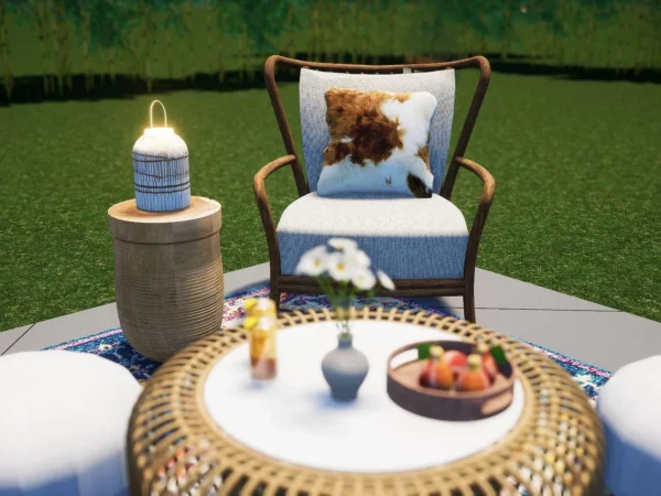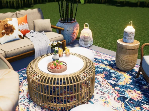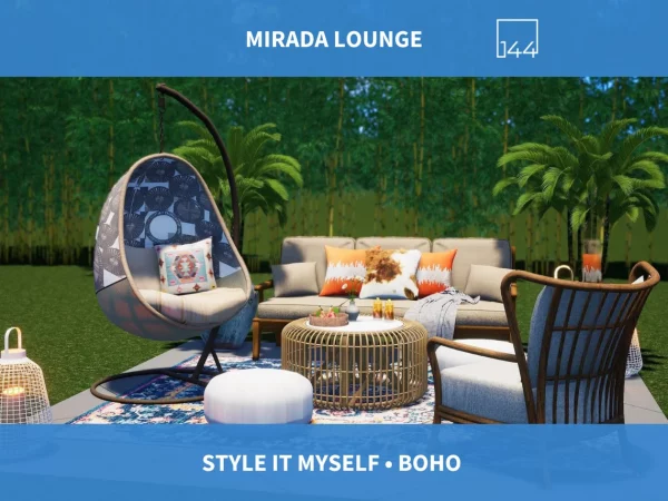 Mirada Lounge is a colorful, eclectic space just calling out for company! The boho-esque rug and colorful pillows feel so good to relax on after a long day! You won’t believe how easy it is to create your outdoor room. Use your existing hardscape, grass, or other outdoor surface and follow the shopping and layout guides to brighten your social game!