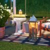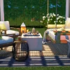 Taylar Lounge is an actual outdoor room! Complete with a cover for shade, there is so much comfort in a 12×12’ space. A hanging daybed has enough room for two, or provides you with plenty of space to stretch out and read or nap while floating on air. Two comfy lounge chairs mirror the bed, and a generous coffee table is ample for drinks, appetizers, or even a meal. A rug, lighting, and plants complete the scene, allowing continuous usage day or night!